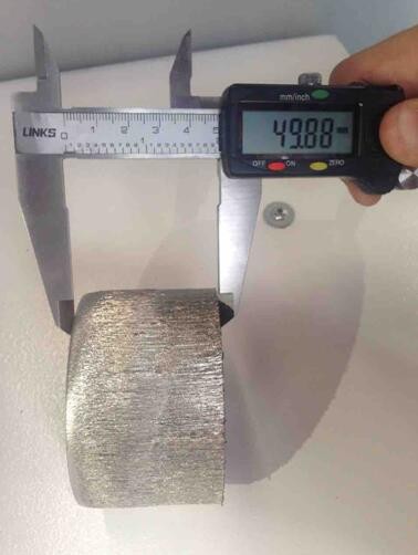 影響激光切割質(zhì)量的因素很多,本文不再贅述。在諸多因素中,噴嘴的結(jié)構(gòu)形式、輔助氣體的種類、壓力、流量對于切割質(zhì)量具有極其重要的影響,尤其是萬瓦級激光切割工藝對噴嘴結(jié)構(gòu)及相關(guān)參量提出更高的要求。目前切割噴嘴主要有單孔式和復合式兩種,出光孔和噴氣孔以圓柱形和錐形為主,加工簡單,制作成本低,但此種結(jié)構(gòu)空氣動力學性能較差,氣體動能不佳,氣體損耗偏大,基本滿足6kW以內(nèi)功率的切割加工。當應(yīng)用萬瓦級激光切割50mm厚不銹鋼時,測試結(jié)果證明拉法爾噴嘴是高壓厚板快速切割工藝最佳的結(jié)構(gòu)形式,其超高速、高壓穩(wěn)態(tài)氣流,作用在切縫入口和切口內(nèi)部,形成穩(wěn)定和高質(zhì)量的切割。拉法爾噴嘴結(jié)構(gòu)復雜,加工困難,制作成本高,而噴嘴屬于消耗件,我們研制了一種既經(jīng)濟又無限逼近拉法爾結(jié)構(gòu)的噴嘴,經(jīng)批量切割驗證,滿足用戶需求。根據(jù)切割厚度和材質(zhì)的不同,選擇不同的噴嘴孔徑,萬瓦級激光裝備切割50mm厚不銹鋼(圖5),采用孔徑為5~7mm的自制噴嘴,穩(wěn)定、高質(zhì)量切割速度超過0.1m/min。
