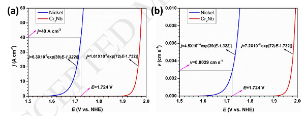 (3) 兩部分電流密度效率曲線幾乎完全相同。此外,析氧反應劇烈的發生,在高電流密度下產生高價金屬陽離子,消耗大量電荷,使電流效率小于100%。