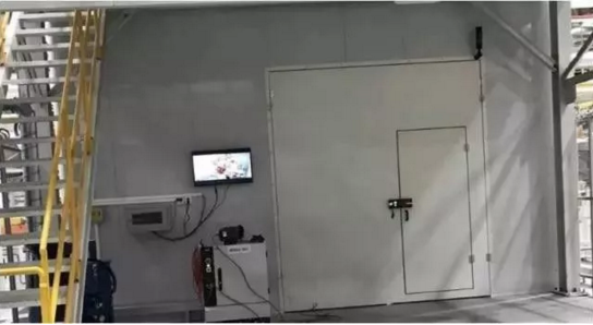 此外整個激光焊接區域設置有5個緊急停止按鈕, 分別置于安全門旁、激光房內部、機器人控制器上和激光柜上。這些緊急停止按鈕可以在緊急狀態下停止工位設備的運行,在線監控可以實時監控機器人的作業情況。