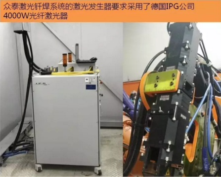 眾泰激光釬焊系統的激光發生器采用了德國IPG公司4000W光纖激光器,配備LaserNet 控制軟件。可自行控制激光器各種參數,并可對輸出激光進行波形控制,實現對激光器的遠程控制。激光發生器嚴格密封,有嚴密的安全防護系統,能防止可能發生的激光輻射對工作人員造成的身體傷害。