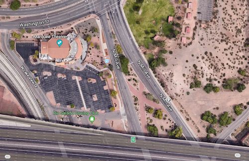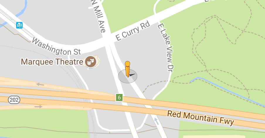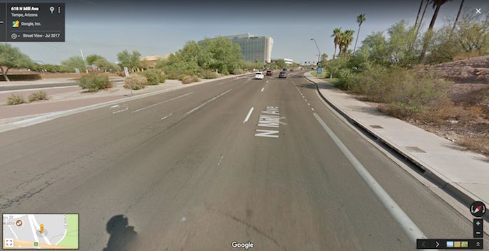事發(fā)地點在坦佩市N Mill Ave 上——更具體來說,這條南北向道路和前方東西向E Curry Rd 交接路口的南邊約200-300 英尺的位置。