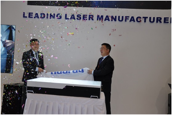 中國光學學會激光加工專業委員會主任王又良先生、武漢華銳超快光纖激光技術有限公司劉振林博士為35W光纖飛秒新產品揭幕