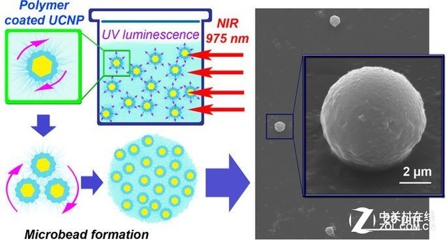 含有濃度為0.15mg/ml的UCNPs的光敏組合物中形成聚合物微珠,其濃度低于閾值