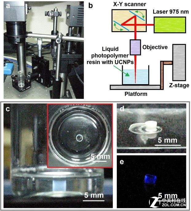 (a)在NIR照射下含有UCNPs的PCC中制造3D聚合物結構的實驗裝置和