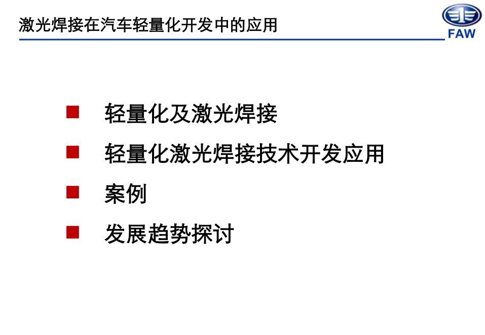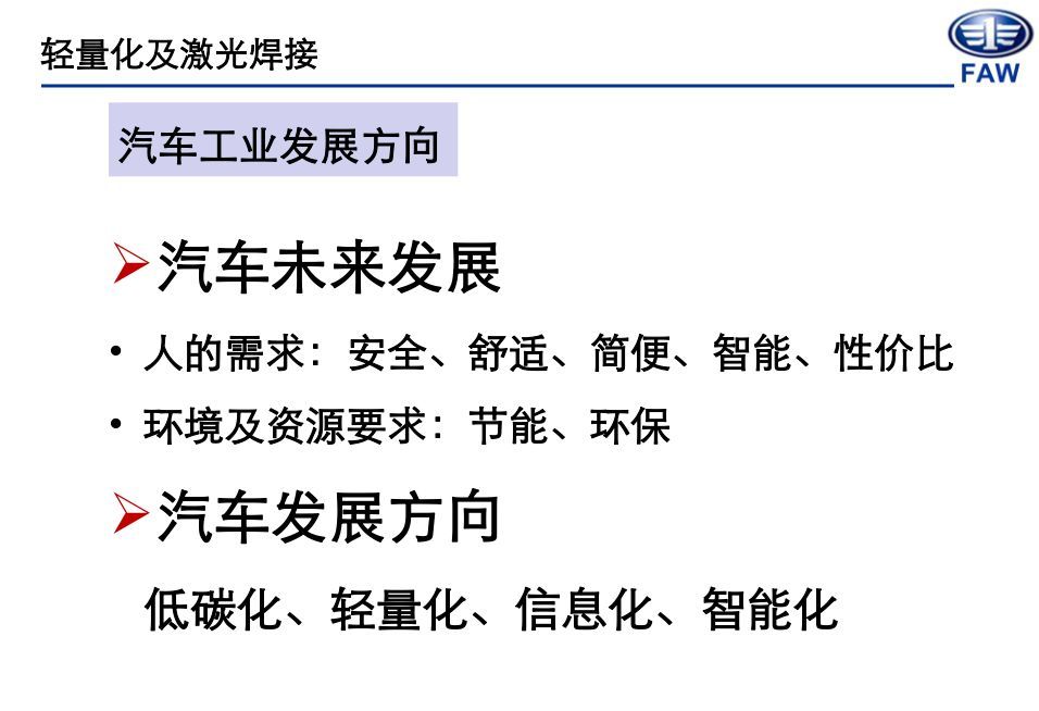 激光焊接在汽車輕量化開發中的應用:文章來源:百度文庫文章來源:百度文庫