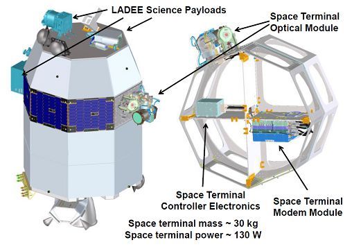 2005年,NASA委托MIT林肯實驗室開始進行月球激光通信演示驗證試驗(Lunar Laser Communication Demonstration,LLCD)的研制,首次嘗試地基接收器與月球軌道器之間的高速激光通信。2013年,月球大氣與塵埃環境探測器(LunarAtmosphere and Dust Environment Explorer,LADEE)攜帶了LLCD通信終端發射升空。