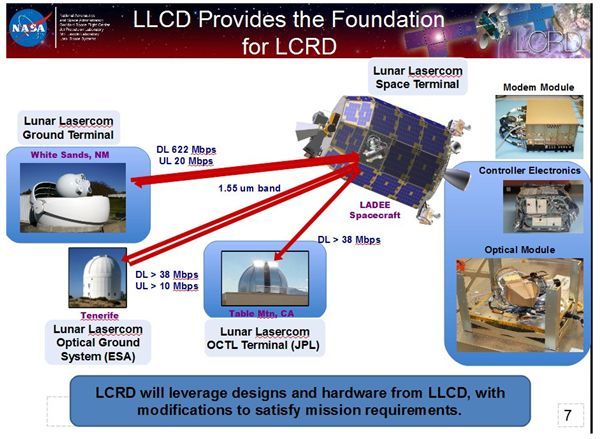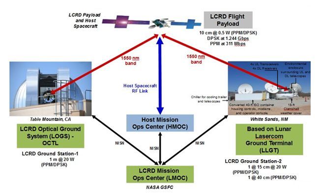 LLCD試驗有三個地面接收系統,分別是MIT研制的LLGT(位于新墨西哥White Sands),JPL設計的OCTL(位于加州),ESA的LLOGS(位于西班牙Tenerife島)。