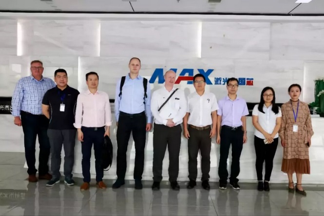 下午,參觀團(tuán)來到了大族激光智能裝備集團(tuán),受到海外接待處負(fù)責(zé)人謝小姐等人的熱情歡迎。首先是參觀了該公司的演示廳,以及大型激光切割機(jī)的裝配產(chǎn)線。大族激光智能裝備集團(tuán)主業(yè)包括生產(chǎn)高功率激光切割、焊接、清洗等加工設(shè)備,是國內(nèi)最早推出光纖激光切割機(jī)的企業(yè),也是這兩年引領(lǐng)切割機(jī)不斷往超高功率發(fā)展的先鋒,目前擁有最大功率切割機(jī)達(dá)1.8萬瓦級(jí)別,為國內(nèi)第一。