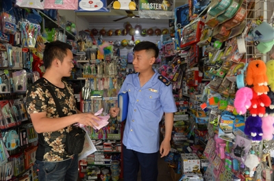 “我們會采取逐一排查、商家自查等多種檢查方式,在兒童玩具中水晶泥、水槍彈、激光筆等都是檢查范圍,一定杜絕‘三無產品’。”樊丹青解釋,一旦發現“三無產品”,第一次是依據相關法律法規向商家開具《責令改正通知書》,第二次再發現則依照相關法規進行處罰。