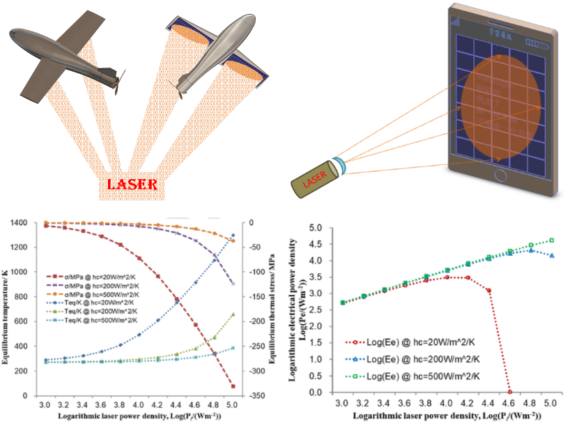 激光充能技術是指利用激光束和光電池實現遠距離、無線充電的技術,可應用于無人機續航和便攜式電器充電等。該技術關鍵在于高亮度激光輻照環境的光電轉換效率和穩定性,因為激光輻照光電池的光電轉換過程總是伴隨著熱耗散,熱耗散引起的材料升溫和熱應力又會通過若干機制(改變材料帶隙、縮短載流子壽命等)降低光電效率,更多光能耗散成熱能,溫升/熱應力進一步加劇,這種耦合行為甚至會導致光電池暫時或永久失效。
