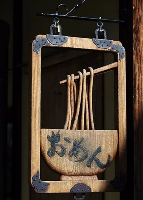 其實木招牌光有文藝風可不行,必須得有創意才行。現在激光雕刻木質招牌,就可以凸顯一個店鋪的特色,比如這家面館,非常形象,一看就知道是面館,而且看了招牌,就會對這家店很感興趣,迫不及待的想進店!