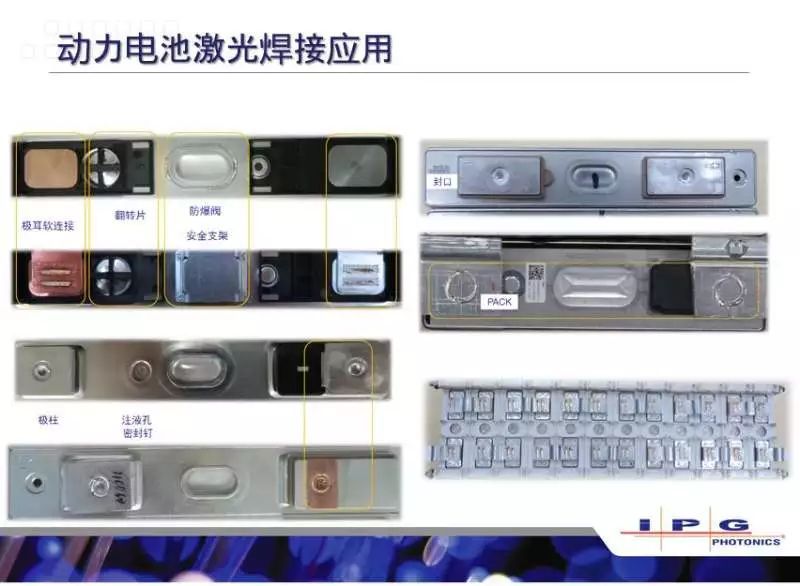 除車身外非常重要的還有電池,在電池這方面IPG做的也是比較成熟的,都是用它設(shè)備相應(yīng)的款型去推薦。硬包電池,它的防爆閥、極柱、軟連接,殼體封口,注液孔,模組,都有相應(yīng)的推薦配置。