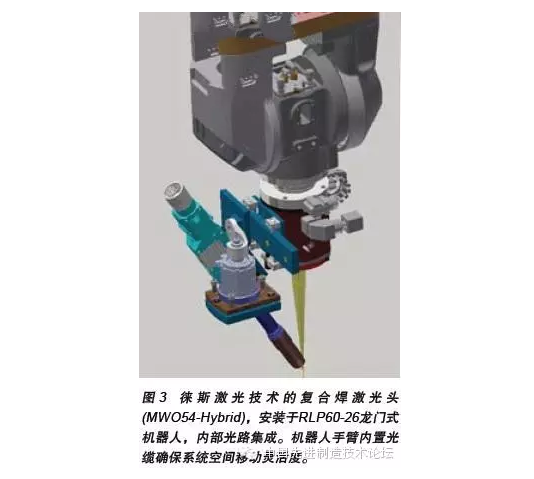 此外, 復合焊激光頭( 圖3 ) 有一定重量,所以對機器人的有效負載也有一定的要求,整個龍門式機器人系統設計非常強勁,足以承受動態負載,同時仍可保證高精度。