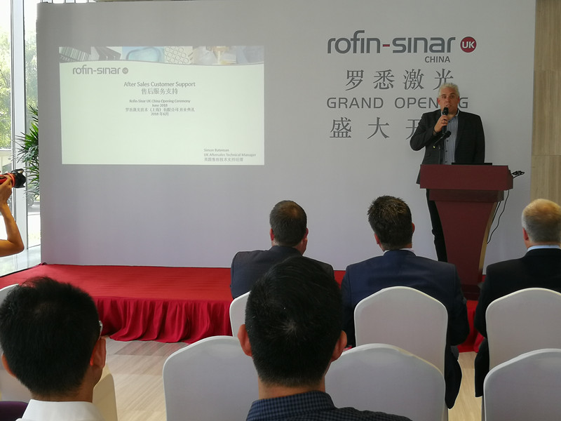 來自C.M. R GmbH 的Christian Zimmer先生為開業典禮致辭。創可激光公司徐強先生、大族粵銘激光王軍先生、蘇州菲鐳泰克公司楊海青先生、《激光制造商情》主編邵火先生等受邀參加了開業典禮并致辭,表達了對羅悉激光的祝福與期望。英國羅芬悉那激光公司銷售總監Andrew Chambers 介紹公司當前的主要產品與工業應用。售后服務經理Simon Bateman 先生介紹了在中國的售后服務規劃。