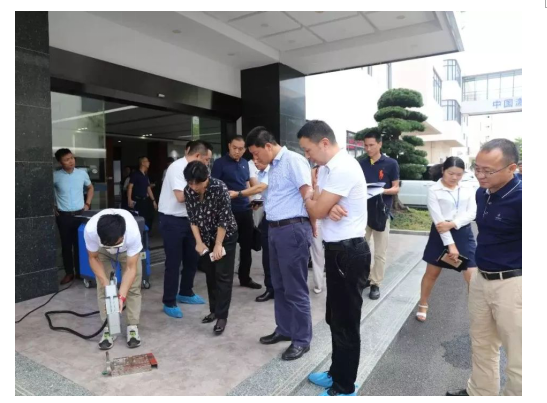 臨走前郭區長觀看應用中心員工演示激光除銹