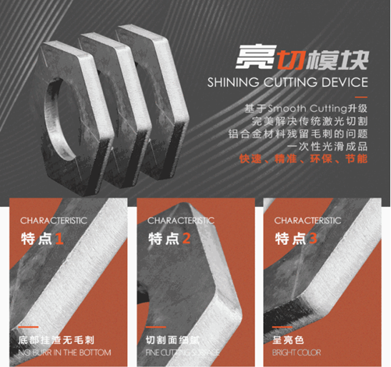 第二,“亮切模塊Shining Cutting Device”加工效果令人驚艷。切割工件表面光滑細膩,呈亮色,不再需要二次打磨。
