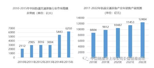 “十三五”期間,我國軌道交通裝備產業將得到快速發展,預計將保持10%左右的增長速度,到2022年其年銷售產值將達到1.2萬億元以上,發展空間巨大。