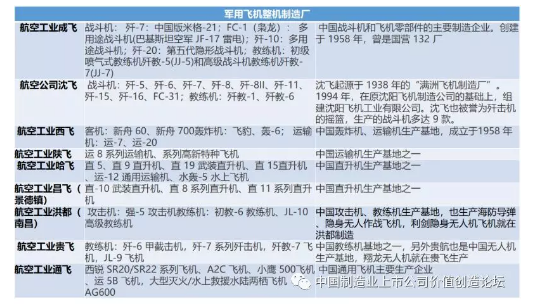 軍機設計研發機構高度集中、各有所長。軍機類型眾多,中航集團針對不同機型,劃分