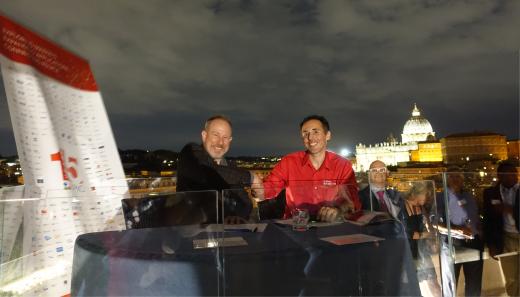 圖片說明:COBO總裁Brad Booth和EPIC首席技術官Jose Pozo博士于2018年9月24日在意大利羅馬ECOC舉行的EPIC活動上簽署了諒解備忘錄。(圖片:EPIC)