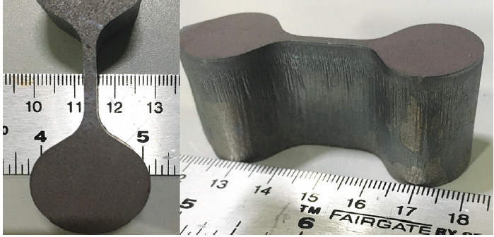 圖4:采用4kW Corona 光纖激光器在代表性低碳鋼工件上切割出的窄高比特征;窄腹板部分為0.110 英寸寬、1 英寸厚。