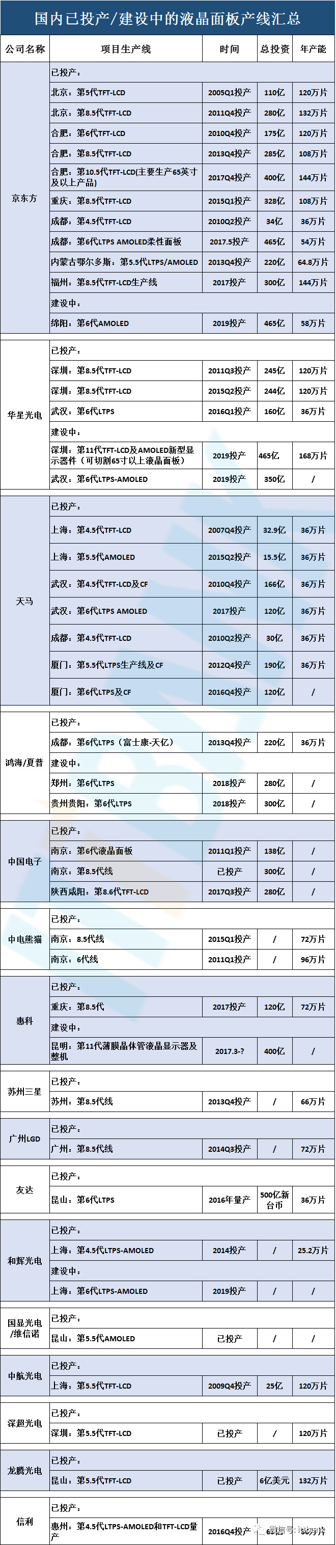 ▲國內主要液晶面板產線和玻璃基板來源