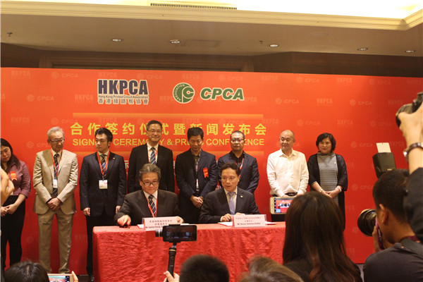 香港線路板協(xié)會(huì)會(huì)長(zhǎng)鐘泰強(qiáng)與中國(guó)電子電路行業(yè)協(xié)會(huì)理事長(zhǎng)由鐳出席活動(dòng)并分別致辭,緊接著他們代表雙方協(xié)會(huì)簽署合作協(xié)議。