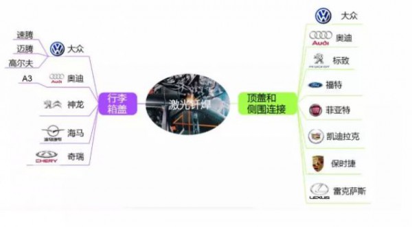 德國大眾Touran轎車的激光焊縫總長度達到了70m。隨后,奧迪、速騰、高爾夫及Passat等品牌的車頂采用了激光焊接技術(shù),通用、豐田、福特、寶馬、奔馳等公司陸續(xù)均采用了激光焊接技術(shù)。