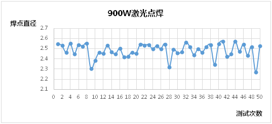 4)結論:焊點尺寸范圍為2.43~2.97mm,平均焊點尺寸2.76mm,焊點波動7.6%,焊點均勻、出光穩定,能滿足精密焊接需求。