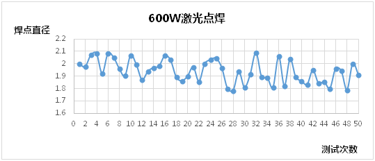 4)結論:焊點尺寸范圍為1.1~1.3mm,平均焊點尺寸1.22mm,焊點波動9.8%,焊點均勻、出光穩定,能滿足精密焊接需求。