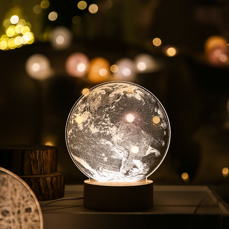 激光雕刻屬于非接觸性的加工方式,不會對亞克力造成機械擠壓或機械應力,不會造成機械變形,激光雕刻后的亞克力夜燈的燈體能夠讓人感受到平面所帶來的3D視覺效果,只需要更換不同的平面燈體就能演繹不同的故事。