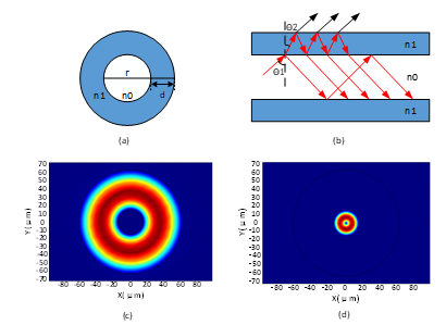 圖1 示意圖(a)光波導(dǎo)結(jié)構(gòu),(b)光傳輸路徑;模場(chǎng)
