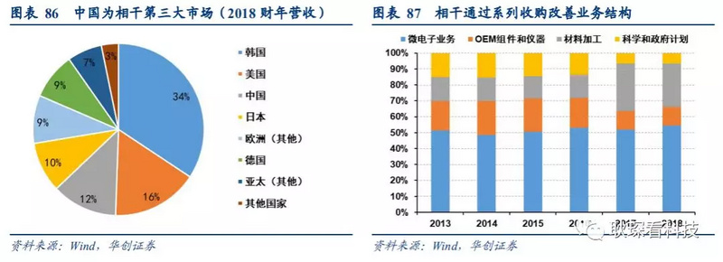 核心面板業(yè)務(wù)將迎來(lái)周期性寒冬。相干主打的CO2、準(zhǔn)分子激光器在OLED面板生產(chǎn)中有著廣泛應(yīng)用。由于OLED面板投資放緩,相干預(yù)計(jì)將導(dǎo)致2019財(cái)年微電子業(yè)務(wù)(2018財(cái)年?duì)I收占比54.5%)營(yíng)收同比下降15%~20%,并在2020財(cái)年迎來(lái)復(fù)蘇。
