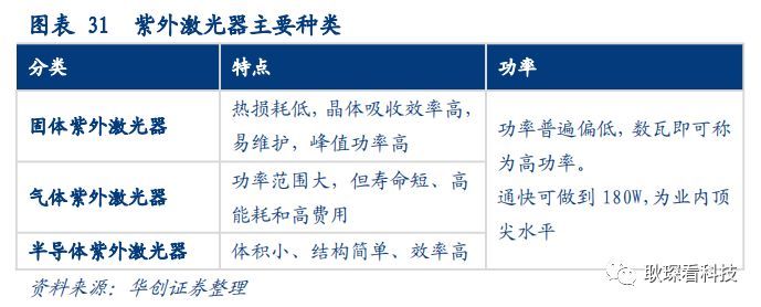 根據(jù)工作物質(zhì)不同,紫外激光器可進(jìn)一步細(xì)分為固體紫外激光器、氣體紫外激光器、半導(dǎo)體紫外激光器等,其特性與應(yīng)用領(lǐng)域也不盡相同。