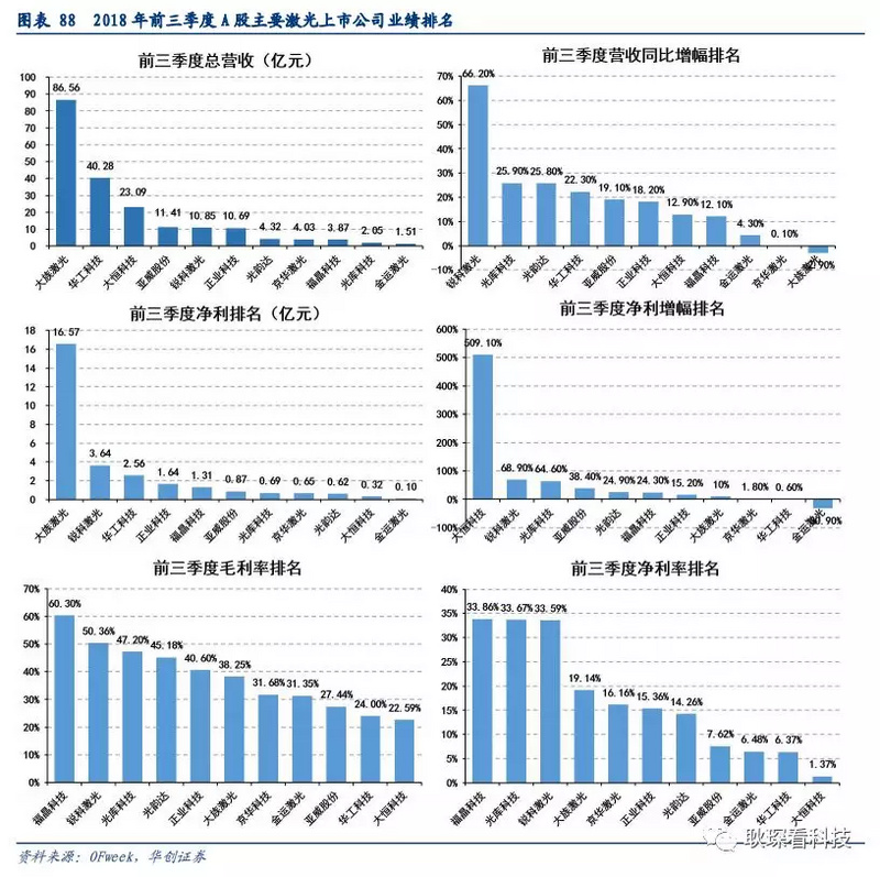 1、2018年前三季度A股主要激光上市公司業(yè)績(jī)排名