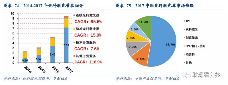 銳科激光是中國(guó)光纖激光器龍頭。國(guó)內(nèi)第一家專(zhuān)門(mén)從事光纖激光器及核心器件研發(fā)并實(shí)現(xiàn)規(guī)模化生產(chǎn)的企業(yè),由航天三江集團(tuán)控股(45.33%)。光纖激光器系列產(chǎn)品占其營(yíng)收達(dá)90%以上,是國(guó)內(nèi)光纖激光器領(lǐng)域產(chǎn)品種類(lèi)豐富、覆蓋面廣的企業(yè)。為解決產(chǎn)能瓶頸、加大研發(fā)投入鞏固技術(shù)實(shí)力、提升生產(chǎn)自動(dòng)化水平及管理水平,銳科激光于2018年6月25日在深交所創(chuàng)業(yè)板上市。