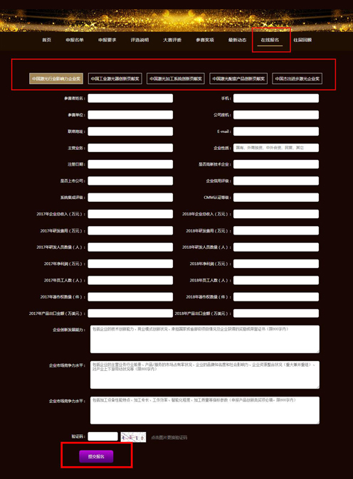 中國境內依法注冊的獨立法人機構。并面向汽車、石油、機械、服裝紡織、航天航空、通信、鋼鐵、軍事、軌道交通、建材五金、電子信息、醫療、文化創意、商品標記、科學研究等的行業應用領域,從事激光器、激光加工系統裝備、激光加工系統配套產品研發、生產、銷售的企業均可報名參評。