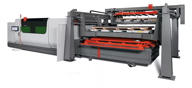 然而,單獨的快速切割還不能達到目的。高速切割的用戶還必須能夠快速加載需要切割的板材,然后卸載。10千瓦的ByStar Fiber需要處理大量材料。配備了自動化解決方案,激光系統的速度如虎添翼。