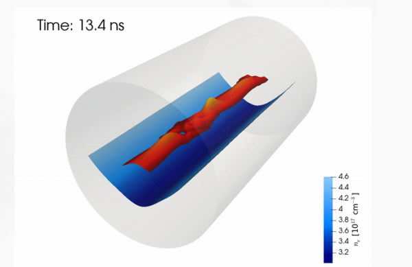 要做到這一點,需要一個等離子通道,它將激光脈沖限制在與光纖通道光線相同的方式。但與傳統光纖不同,等離子體通道可以承受加速電子所需的超強激光脈沖。為了形成這樣的等離子體通道,需要在中間使等離子體密度較小。