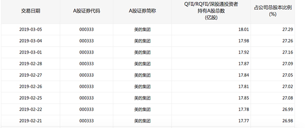 公告中還稱,根據深圳證券交易所網站顯示,截至2019年3月4日收盤,QFII/RQFII/深股通投資者持有公司掛牌交易A股數量為3.01億股,占公司總股本的比例為28.23%。