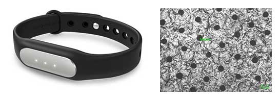 大家都知道小米手環有3顆LED指示燈,可以顯示藍色,綠色,紅色和橙色,可這光是怎么透出來的呢? 答案就是激光打孔技術。激光打