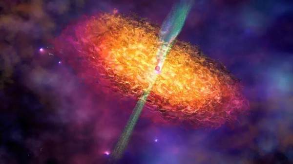 這幅藝術家的印象描繪了一個黑洞的周圍環境,顯示了一個由過熱等離子體和相對論射流組成的吸積盤。資料來源:Nicolle R. Fuller/NSF