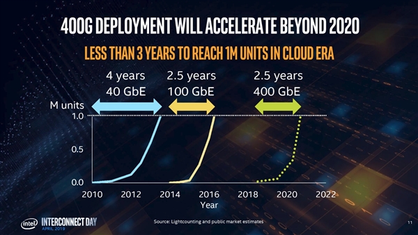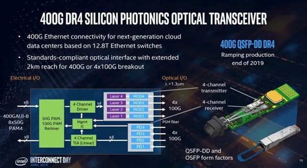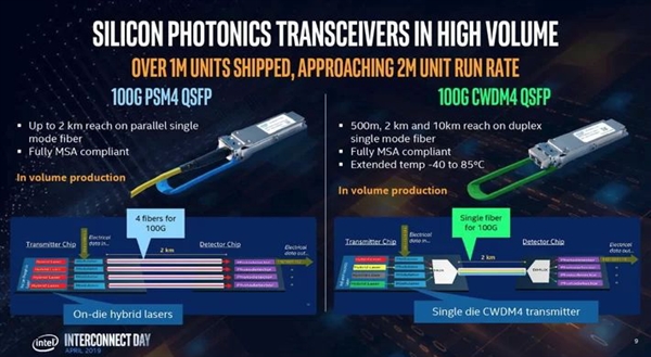Intel計(jì)劃今年第四季度量產(chǎn)400G硅光子收發(fā)器,而在過(guò)去兩年,Intel已經(jīng)賣出了100多萬(wàn)個(gè)100G收發(fā)器。