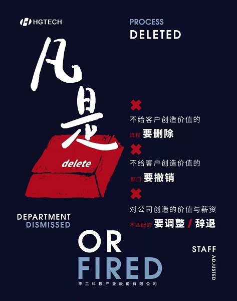 對于企業來說,我們所從事的一切活動——研發、生產、管理所產生的費用甚至日常辦公費、水電費都是客戶買的單,沒有以客戶為中心,內部再熱鬧、再多亮點,也是自娛自樂。2017年,我再次擔任總裁后,進一步明確了“以市場為導向,以客戶為中心”的理念,在此基礎上進一步提出:凡是不給客戶創造價值的流程要刪除,凡是不給客戶創造價值的部門要撤銷,凡是不給客戶創造價值的員工要辭退,在內部簡稱為“三個凡是”,今年根據實際情況又將“凡是不給客戶創造價值的員工要辭退”調整為“凡是創造的價值與薪資不匹配的要調整或辭退”。