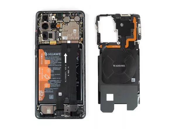 華為P30 Pro后殼的是采用玻璃材質(zhì),本身會(huì)對(duì)拆解帶來一些困難,但這也讓華為P30 Pro的無線充電成為可能。