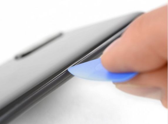 iFixit表示,剛開始拆解時(shí)整個(gè)玻璃后殼和中框貼合非常緊密,肉眼幾乎看不到縫隙。