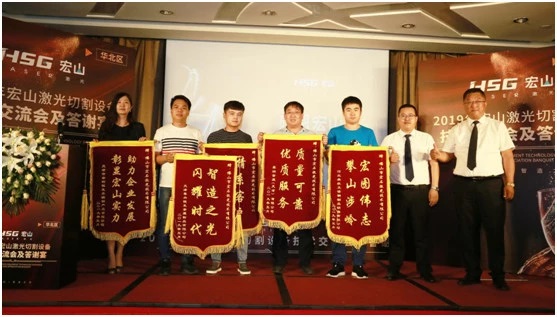 部分老用戶為宏山激光送上錦旗,對宏山的設備表示認可。錦旗的贈予,代表了老用戶對宏山的信任,更寄予宏山在激光智造裝備領域服務用戶的更多責任。活動相聚短暫,但宏山與用戶未來在激光智能裝備的探索之路還很長——攜手共勉,砥礪前行。