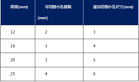在高速亮面切割技術的引申下,我們開發了厚板的小孔切割技術,能夠在較厚的板材上,切割出直徑遠小于板厚的高質量小孔,例如,在20mm的碳鋼板上,切割出直徑為3-5mm的小孔并能夠穩定加工。