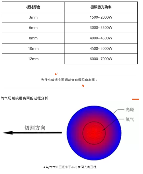 關鍵點:碳鋼亮面切割時,板材厚度確定時,存在一個極限功率。