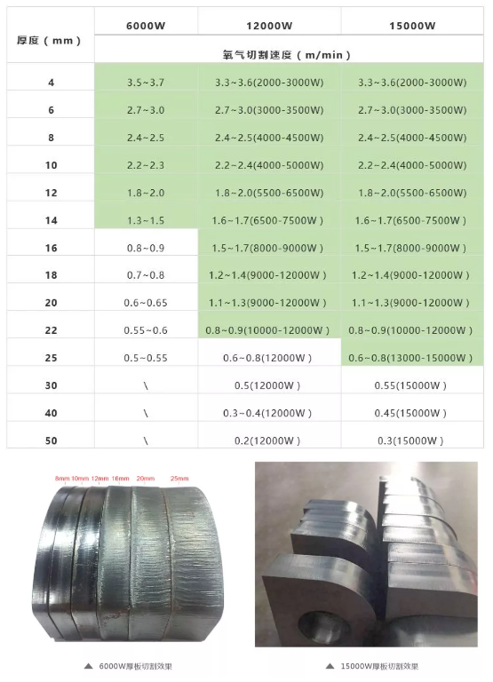 ?若實際功率大于極限功率,隨著功率的增加,切割速度保持不變,不會有提高;同時,切割效果也不會有變化;碳鋼氧氣亮面切割:板材厚度與極限功率的關系。