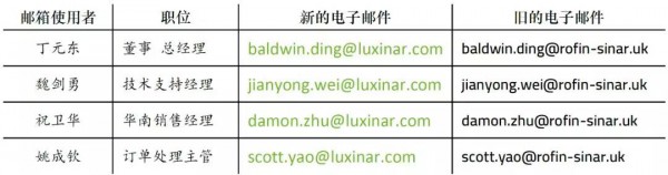 羅悉激光中國地區(qū)主要聯(lián)絡(luò)人的電子郵件將修改為: